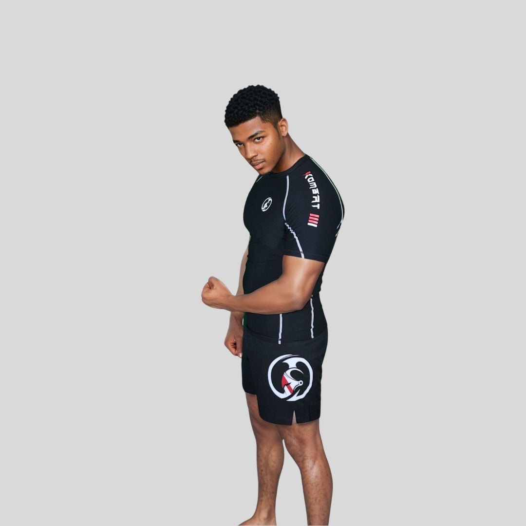 PRO HALF SLEEVE ADULT RASH GUARD BLACK | KOMBAT USA
