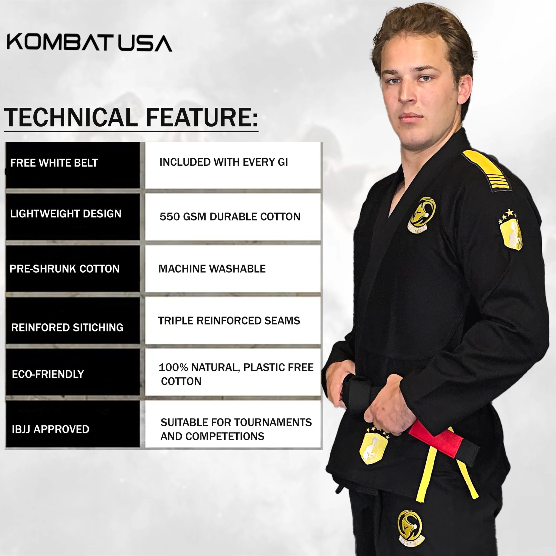 Unlock your potential with the Kombat Kratos BJJ Gi, designed specifically for combat athletes who expect exceptional durability and performance.