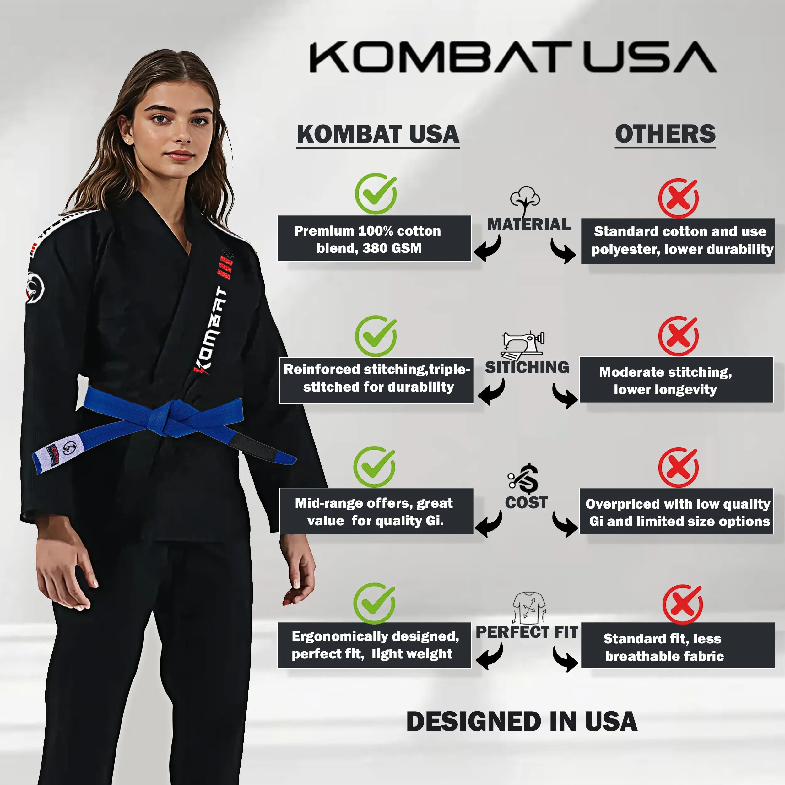 Light in weight: Because the kombatUSA karate uniform is so lightweight, you won't encounter any physical strain. It is composed of 100% cotton. You are unlikely to get to the finals to secure victory in the BJJ tournament once you wear it.