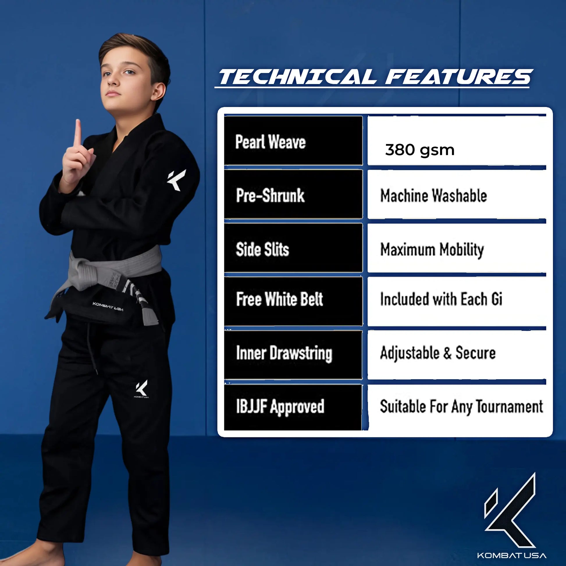 Equip your little one with the Little Masters Gi—combining lightweight durability, comfort, and IBJJF compliance. Kombat USA: Gear Up, Dominate!