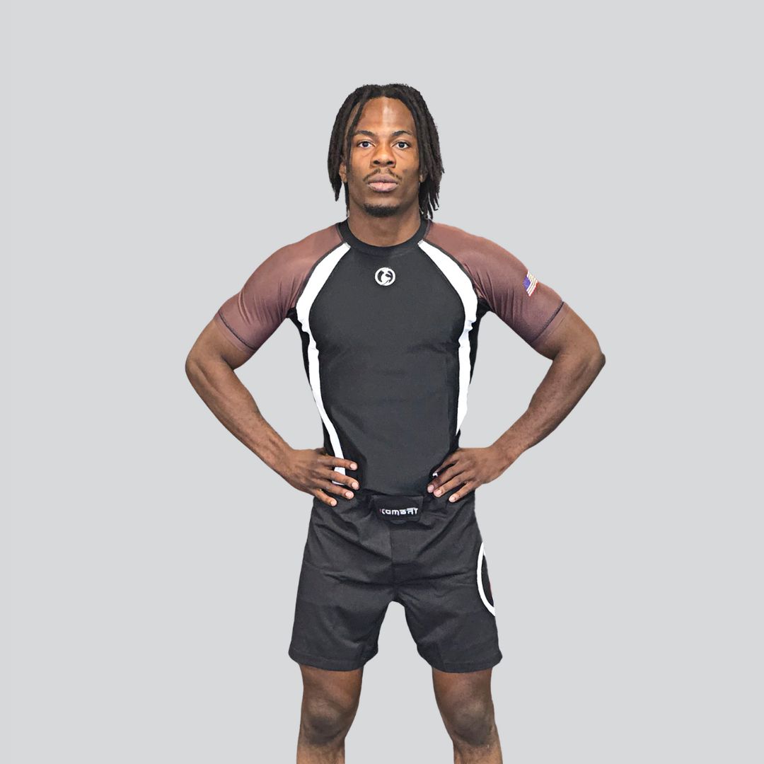 Dominate your no-gi sessions with the Kombat Half Sleeve Ranked Rash Guard, combining elite performance, durability, and IBJJF-approved design for ranked practitioners.