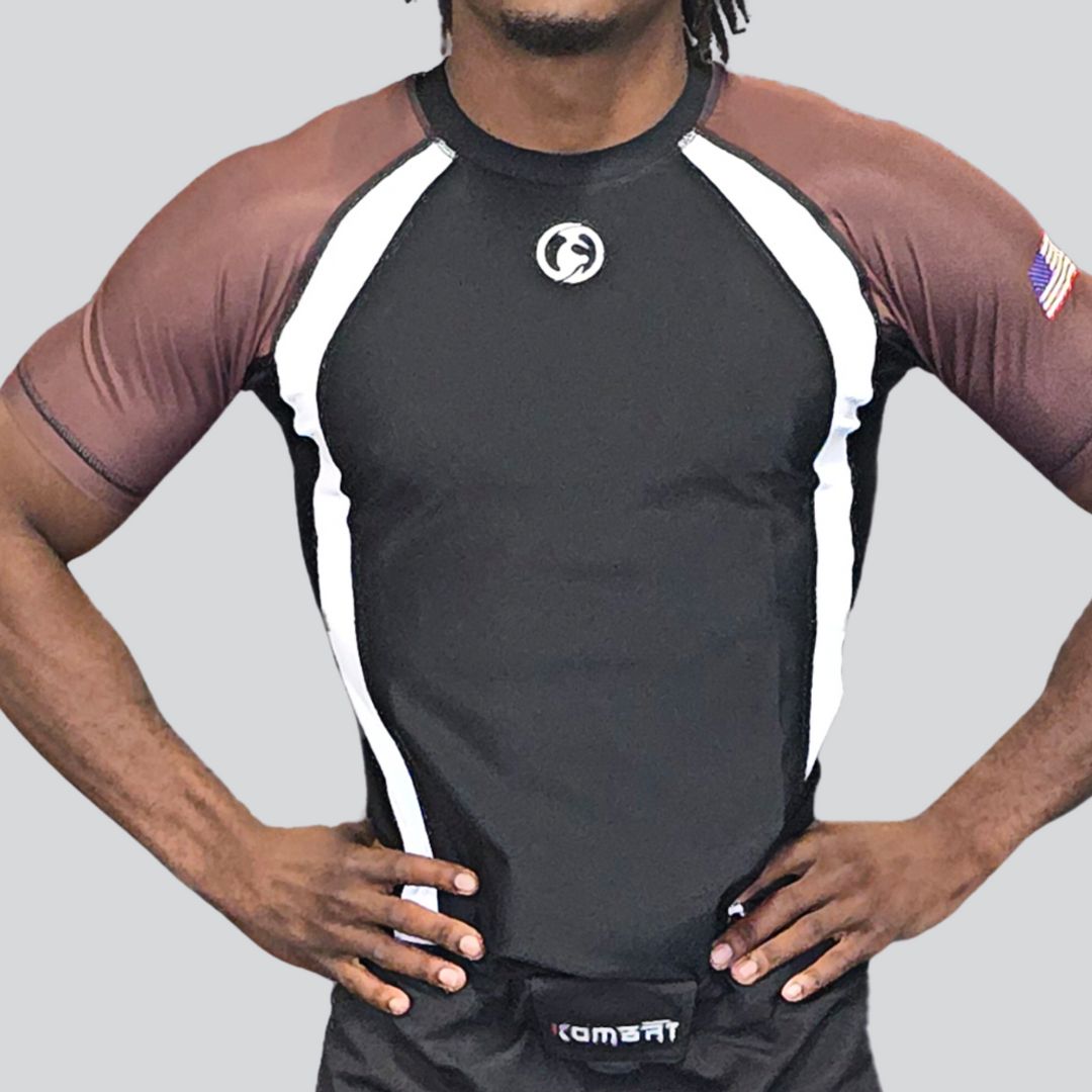 - Versatile Design: The Kombat Half Sleeve Ranked Rash Guard from Kombat USA has a trendy, contemporary appearance. This kind of men's jiu-jitsu rash guard frequently combines technical features and cutting-edge design components.