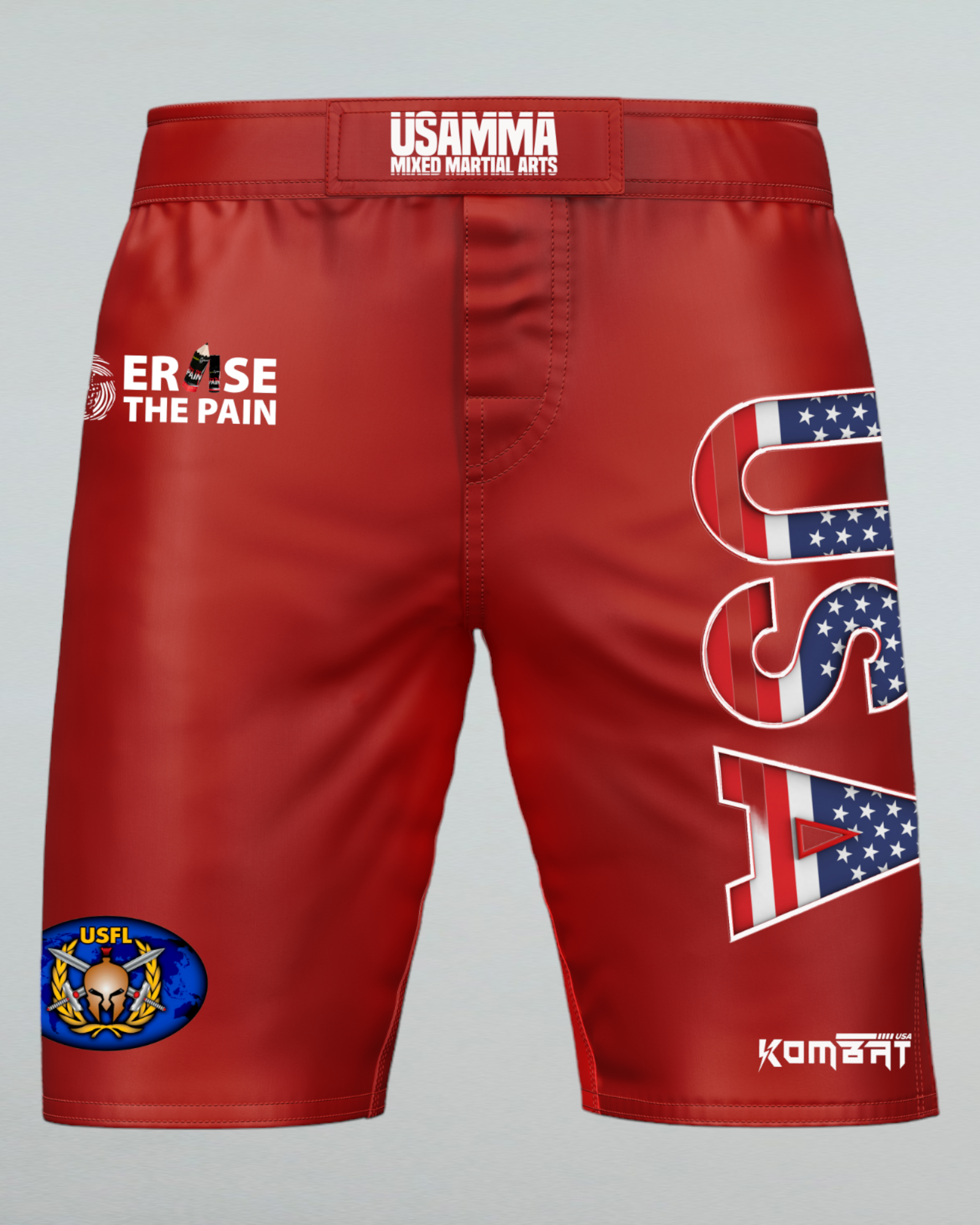 USAMMA MMA Shorts in Red are the ideal choice for those seeking lightweight yet highly durable BJJ shorts. Designed with a side slit for a perfect fit, KOMBAT USA has crafted these men's BJJ shorts using 80% polyester and 20% spandex. The inclusion of micromesh and flatlock seams prevents skin chafing and friction during training and competitions. A wide and adjustable waistband ensures a superior fit. The reflective logo, created with fully sublimated graphics, maintains its appearance even after numerous washes. Purchase these premium no-gi shorts to elevate your entire MMA & Jiu-Jitsu journey.