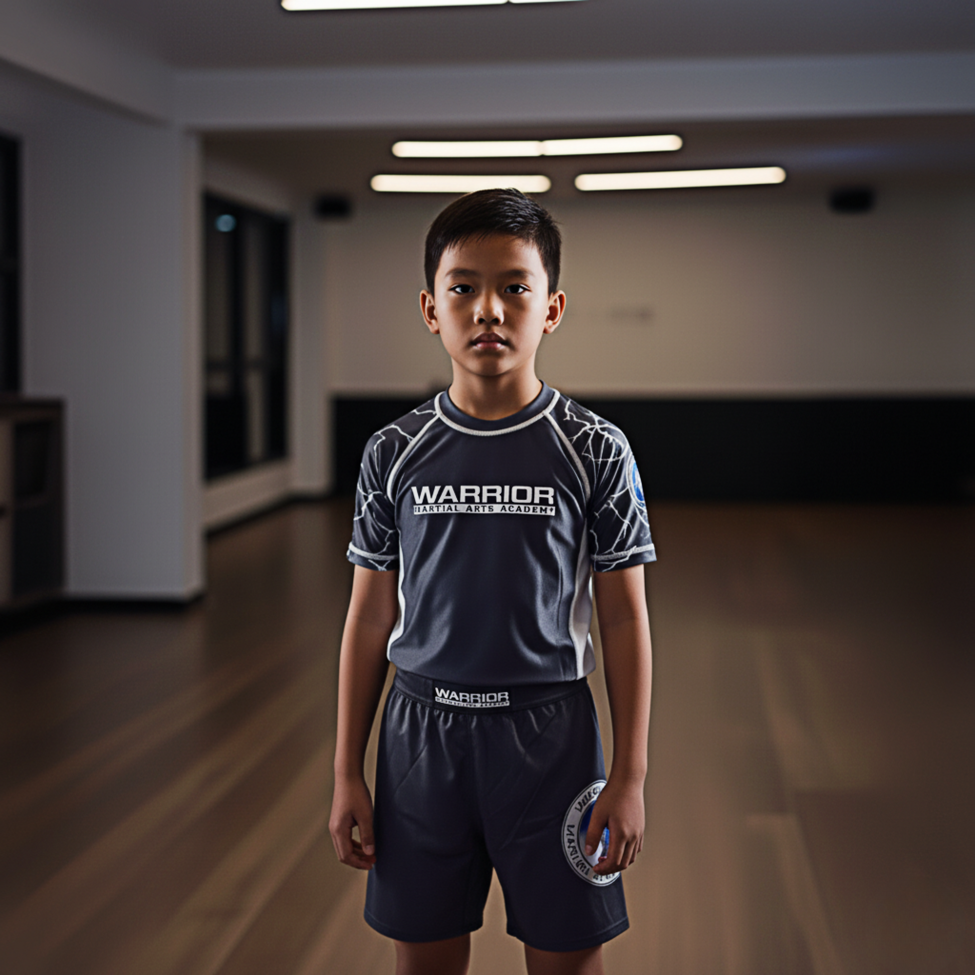 The Warrior Youth Rash Guard Black/Grey is expertly designed for athletes who demand both lightweight comfort and exceptional durability